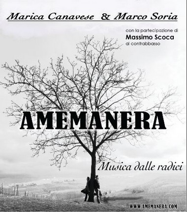 AMEMANERA, che in Piemontese significa “a modo mio”, è un progetto che nasce nel 2010 dall’incontro di due sensibilità musicali affini; Marica Canavese, cantante, e Marco Soria, chitarrista autore degli arrangiamenti e dei brani originali che, in questa serata, saranno accompagnati dal contrabbasso di Massimo Scoca.